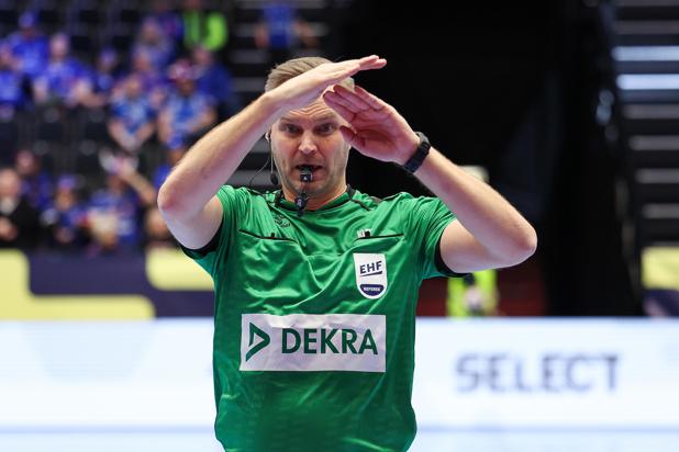 Icelanders Jonas Eliasson and Anton Pálsson will take charge of the 5/6 placement match. Bojan Lah and David Sok of Slovenia are whistling the first semi-final, between Germany and Croatia; Norway's Lars Jorum and Håvard Kleven are refereeing Denmark versus Iceland.